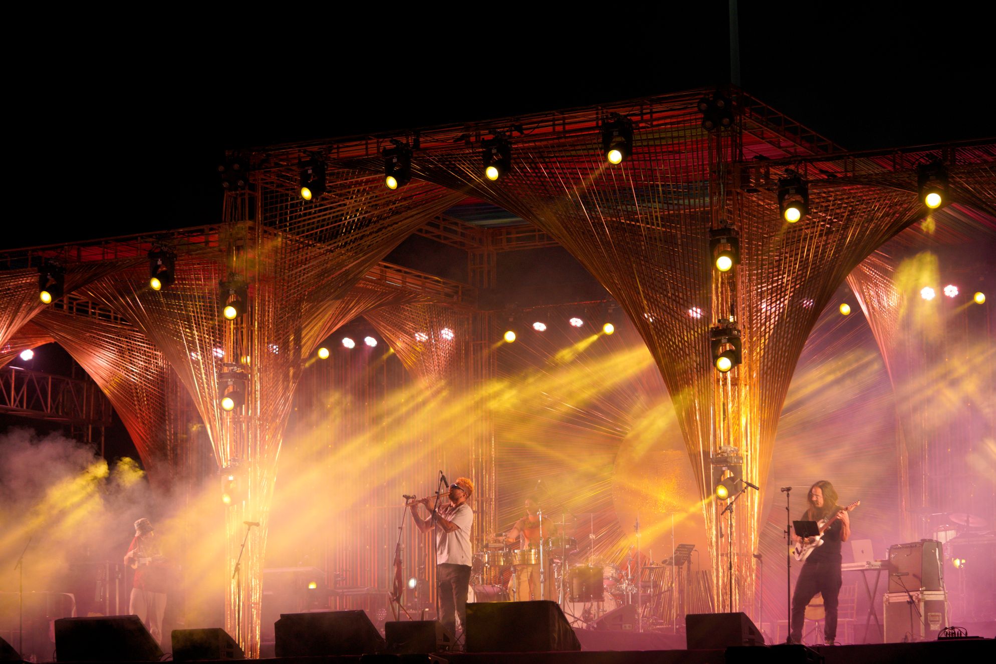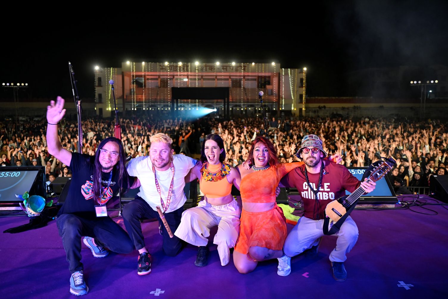 En escena, Calle Mambo interpreta más de 10 instrumentos —quena, quenacho, cuatro, charango, tiple, gaita, zampoña, ronroco, timbales— ofreciendo un espectáculo vibrante: un viaje impactante, sensible y bailable por toda Latinoamérica, un verdadero huracán en vivo!