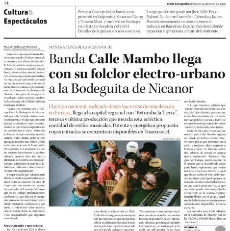 Con 13 años de trayectoria, 3 álbumes y más de 300 conciertos en el mundo, Calle Mambo se ha convertido en una referencia de la renovación de las músicas latinas. Su energía ha hecho bailar a miles de personas en festivales como el Festival du Bout du Monde (Francia), Sfinks Festival (Bélgica), Quai Branly (París), Mela Festival (Noruega) o Fuerteventura en Música (España).